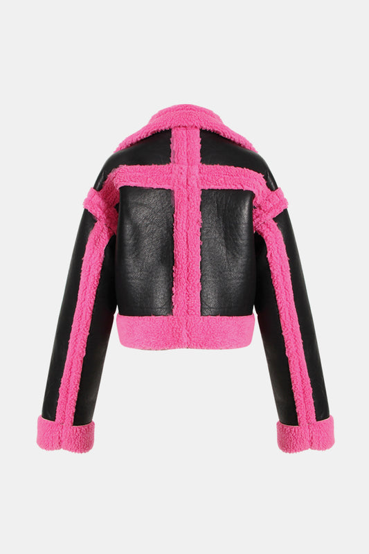 Contrast Color Surplice Neck Long Sleeve Blouse